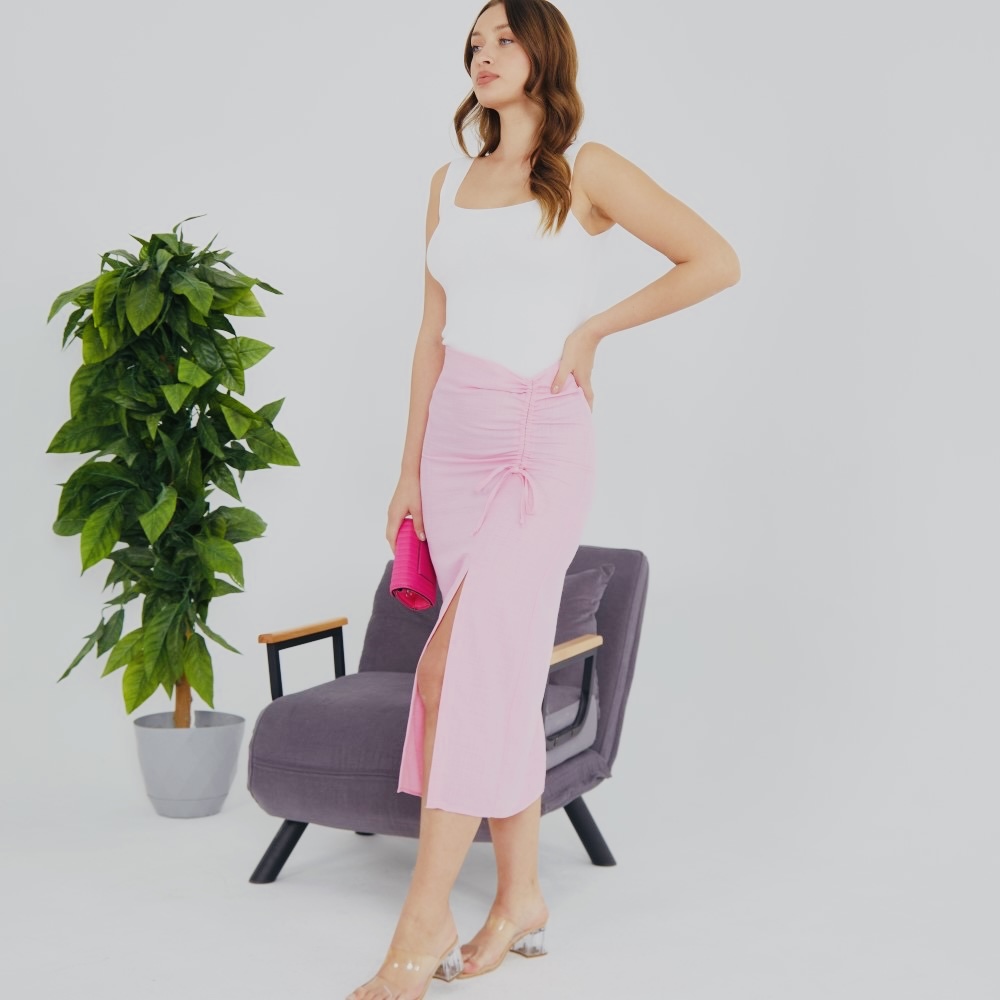 חצאית מבד פשתן עדין ומשובח.
