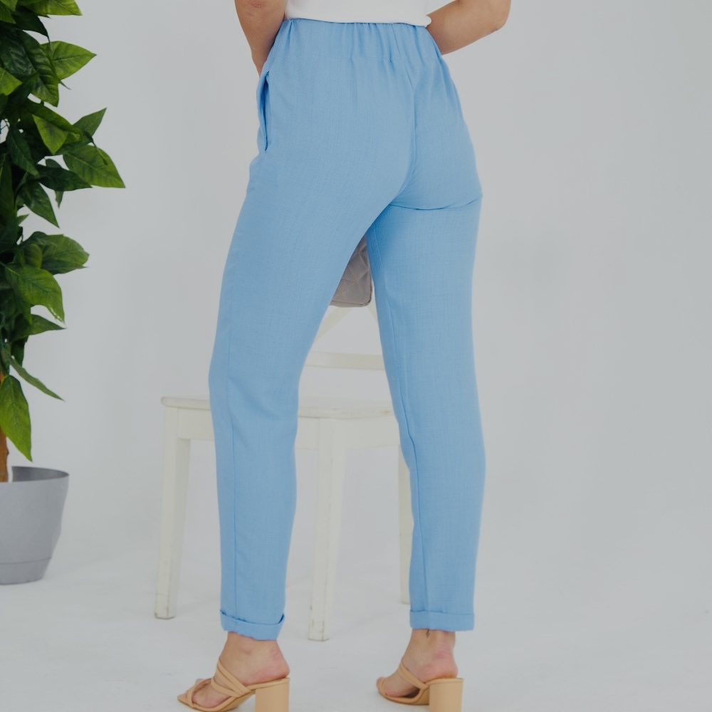 מכנס מבד פשתן עדין עם סיומת מקופלת.