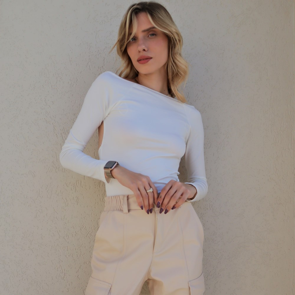 טופ בעל שרוולים ארוכים. מבד רך נעים ולא מגרד. פתח עמוק בגב עד קו המותניים. טופ מיוחד ומושלם שאת לא יכולה לפספס.