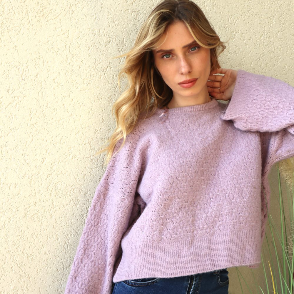 סריג הדגל שלנו לעונה. סריג בסריגה מיוחדת של מתומנים קטנים ועדינים. סריג בעל שרוולי פעמון רחבים וארוכים. בגזרה רחבה ומושלמת.