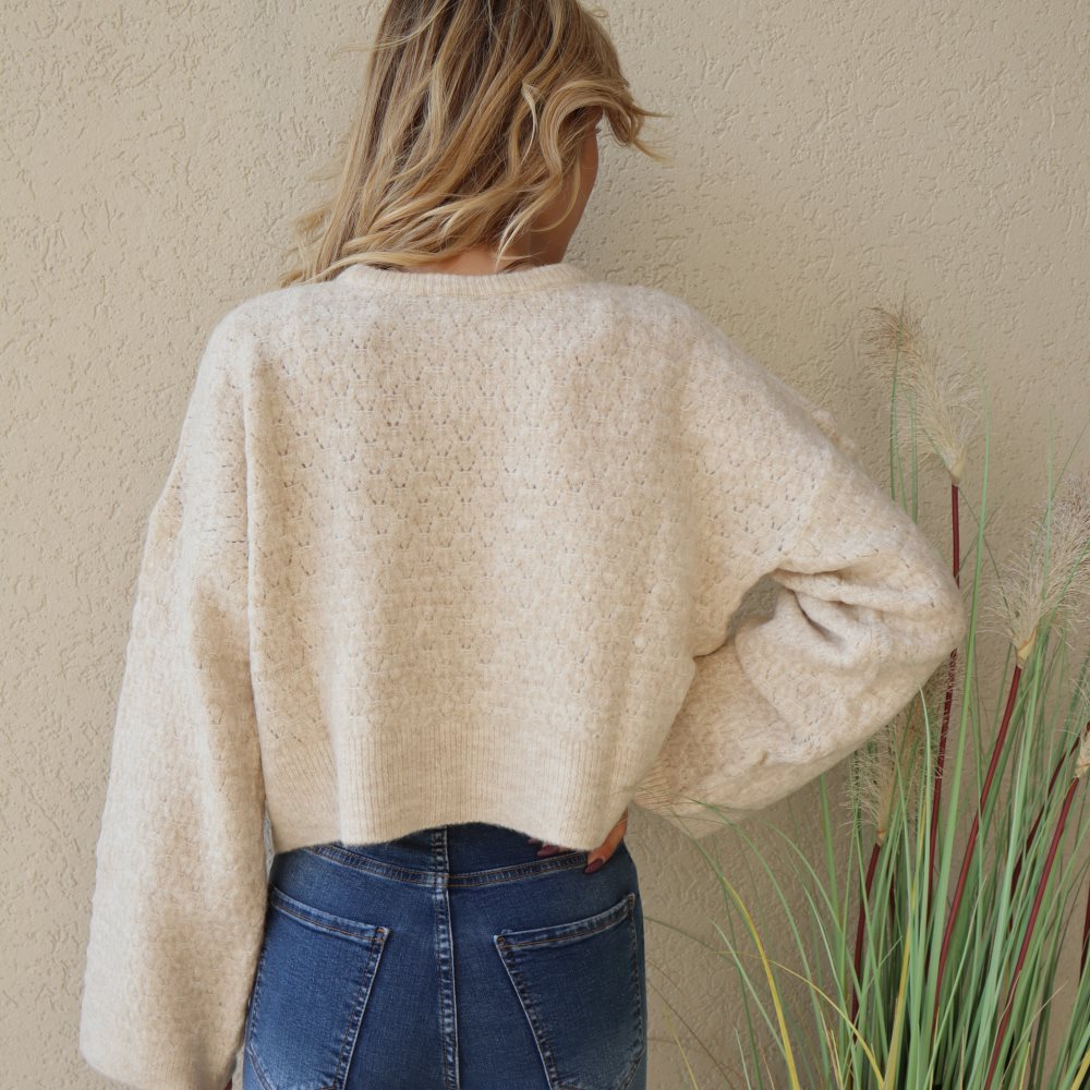 סריג הדגל שלנו לעונה. סריג בסריגה מיוחדת של מתומנים קטנים ועדינים. סריג בעל שרוולי פעמון רחבים וארוכים. בגזרה רחבה ומושלמת.
